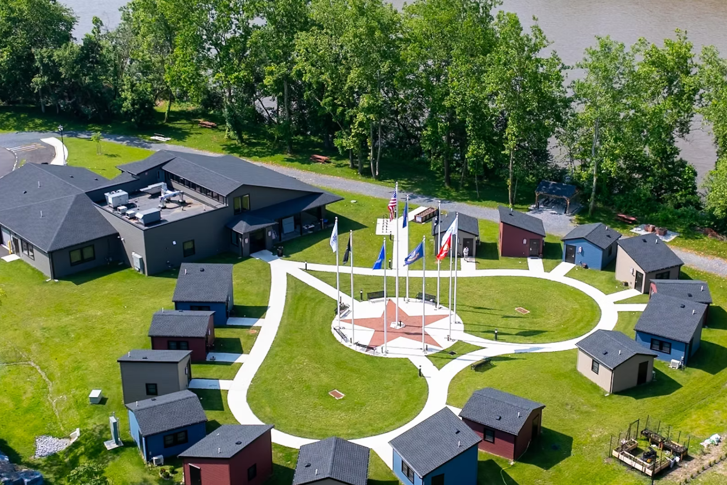 Formed in 2019, Veteran’s Outreach of PA (VOPA) began fundraising for Veterans Grove (a heart-shaped village of tiny homes and a community center) in 2021. It officially opened in June 2024 and overlooks the Susquehanna River. The 15 homes provide veterans residing at Veterans Grove with security and easy access to a multitude of other support systems. VOPA continues to serve veterans who are at-risk or experiencing homelessness throughout central PA.